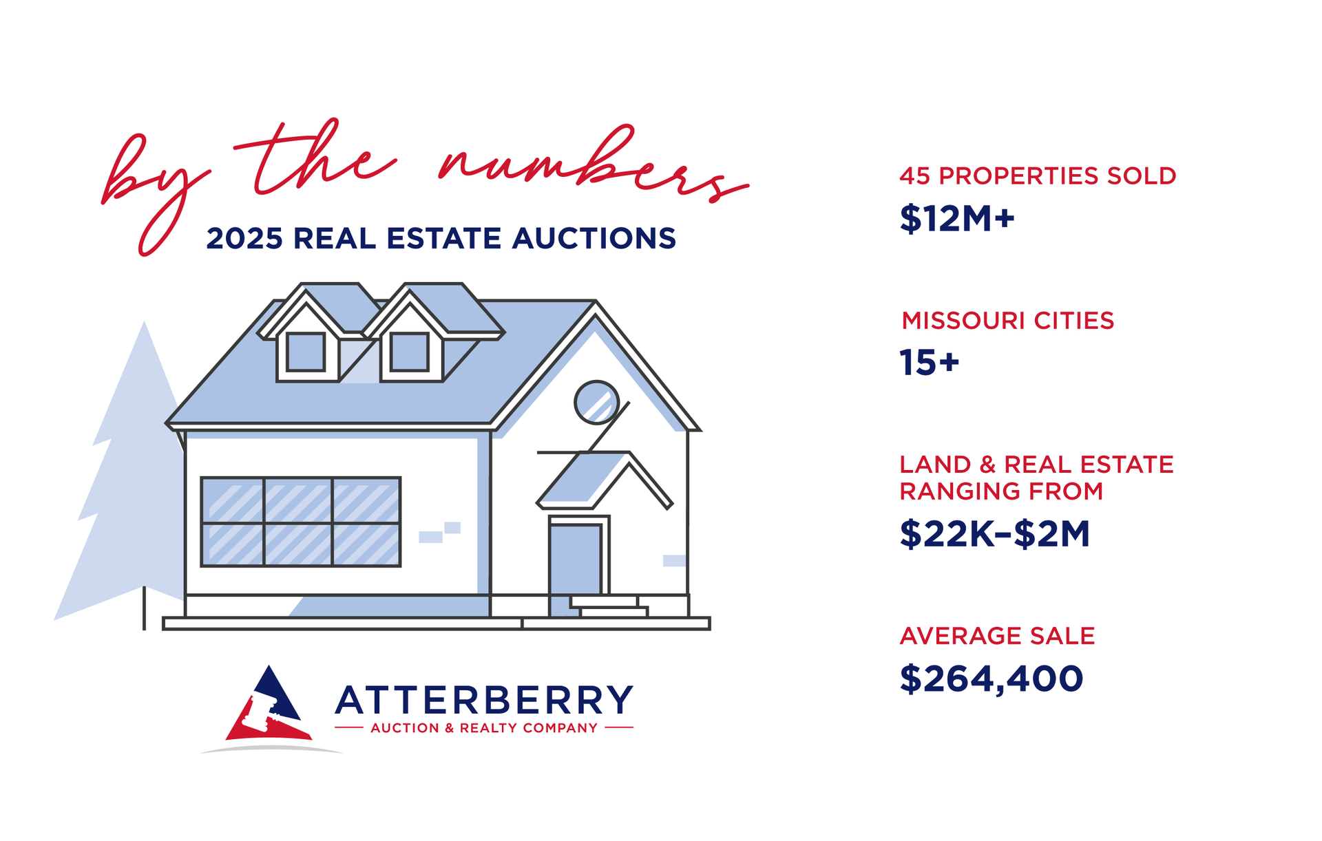 Atterberry Auction & Realty Company closed 2025 with strong results for sellers across mid-Missouri. From residential homes to land and investment properties, our real estate auctions delivered certainty, competitive bidding and clear timelines in a changing market.